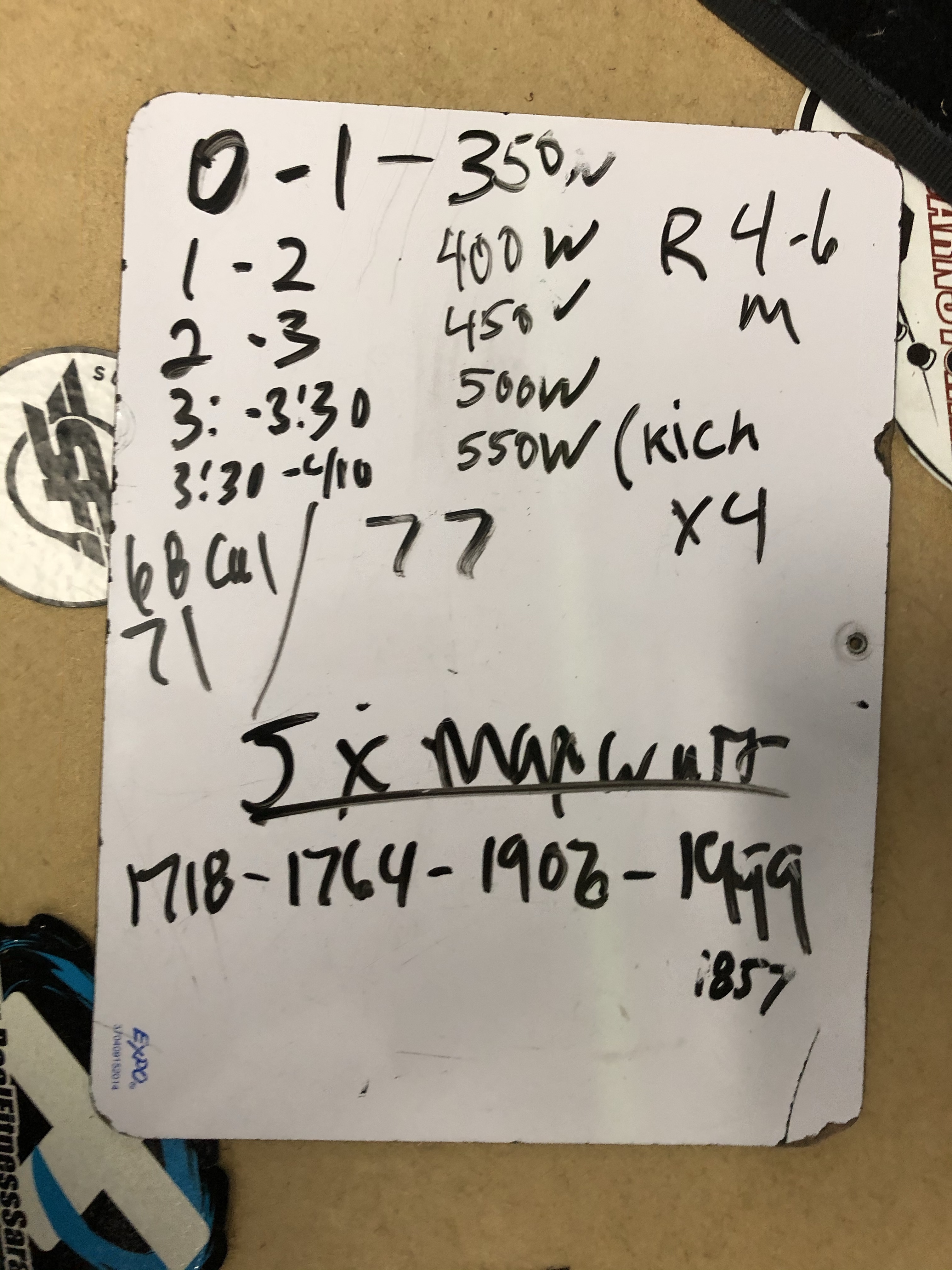 Kind of weird but back popped + Assault bike 8-10sec HARD for max watts, new set every 90 sec x 5